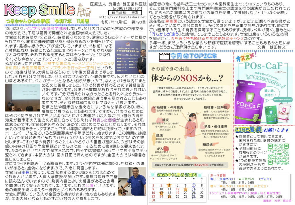 つるちゃんからの手紙 (ニュースレター) 令和7年11月号を更新いたしました。