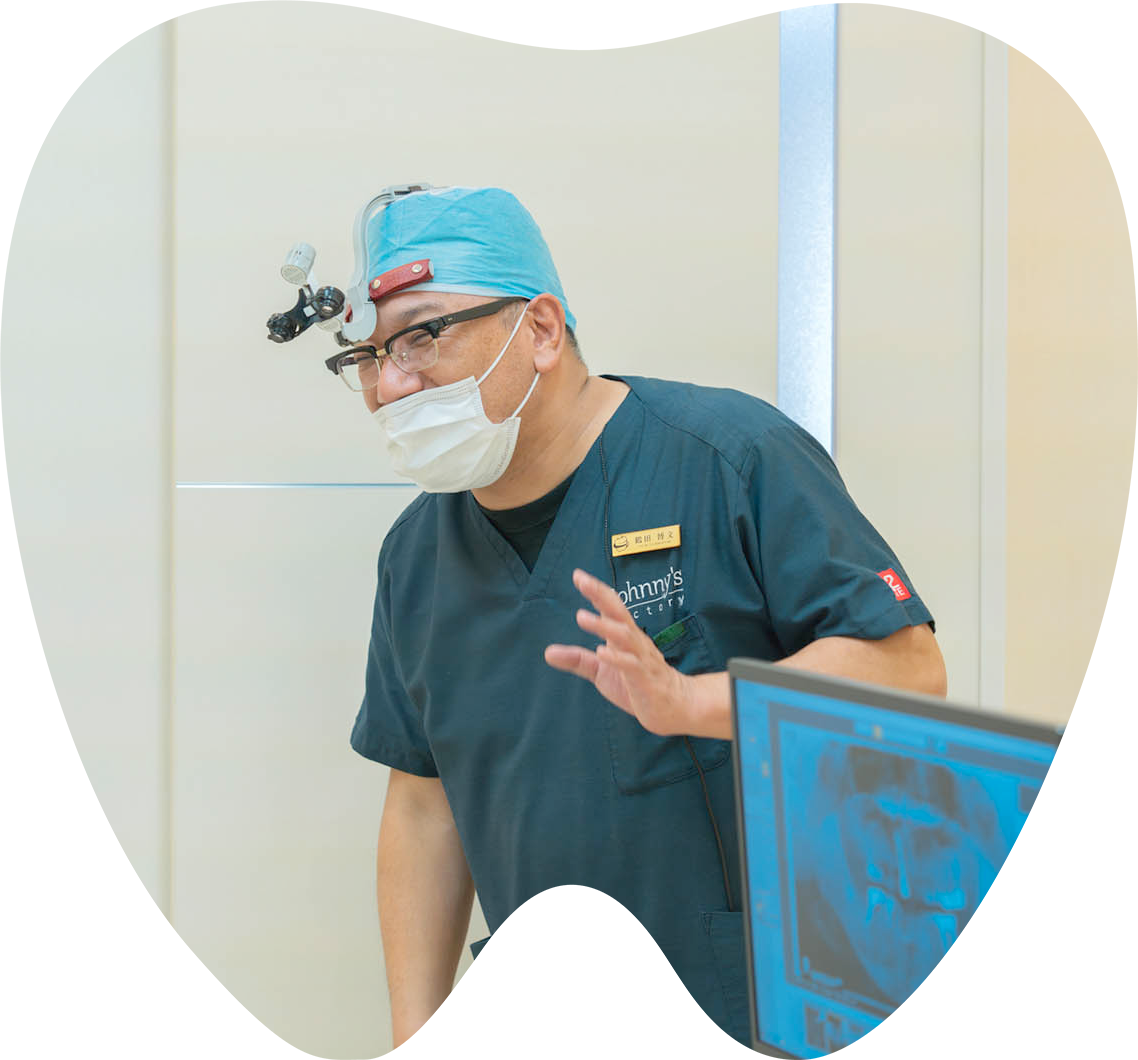 インプラント治療は、知識・技術・経験・センスを兼ね備えた歯科医師でなければできません。私は口腔外科出身で、20年近く学会やセミナー、ライブオペを通じて研鑽を積み、現在も学び続けています。